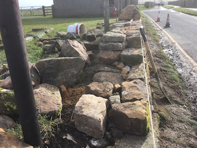 Its quite an old wall and is built below the well know Aislaby quarries which supplied the stone for Whitby Abbey and London Bridge amongst other places.